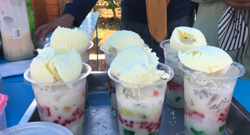Es teler toping es cream di kawasan Stadion Gajah Mada, Mojosari, Mojokerto, laris manis, Minggu, 18 Agustus 2024. Foto: Hasan