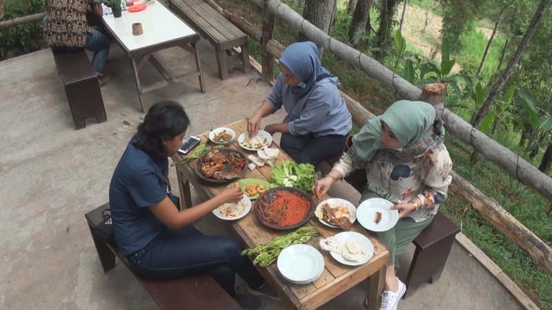 "Masakannya endulita (enak), bumbunya berasa sekali. Harganya juga sesuai dengan rasanya, cukup terjangkau. Apalagi saat makan kita bisa nikmati keindahan dan keasrian alam, soalnya posisi ada di tepi lembah seperti ini," ucap wanita yang menyukai kuliner tradisional ini.