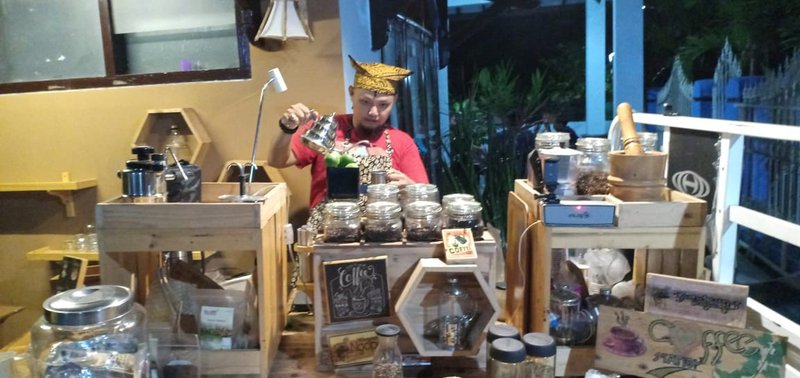 Dia menyediakan berbagai jenis kopi dari Banyuwangi maupun dari beberapa tempat lain di nusantara. Dari robusta tubruk dengan harga Rp 8.000 per cangkir hingga espresso yang harganya Rp 15.000 per cangkir. Harga untuk kopi robusta dan arabika dia patok sama, dengan pengaturan subsidi silang harga.