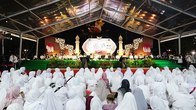 Ribuan Jamaah Membaur Bareng Gubernur Khofifah dan Ning Ita di Alun-alun Kota Mojokerto