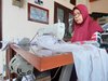 JAHIT APD. Salah satu penjahit rumahan di Kota Probolinggo, Ririn Dwi Kartikowati, sedang menjahit pakaian APD yang akan disumbangkan untuk tenaga medis, Sabtu, 28 Maret 2020. Produksi APD ini dibiayai secara swadaya. Foto: Zulkiflie