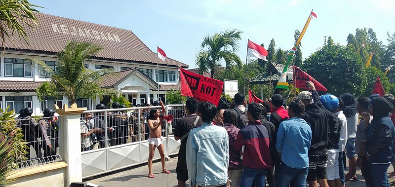 JATIMNET.COM, Gresik - Kedua kalinya puluhan massa aktivis Lembaga Swadaya Masyarakat (LSM) Forum Kota (Forkot) ngluruk kantor Kejaksaan Negeri (Kejari) Gresik, Rabu 7 Agustus 2019