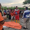 Petugas PMI Mojokerto saat akan mengevakuasi jenazah korban kecelakaan.
