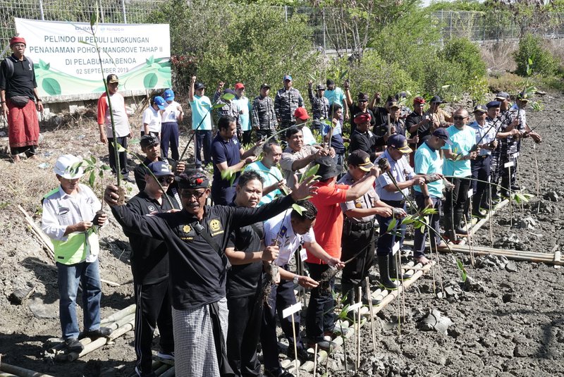 JATIMNET.COM, Denpasar – PT Pelabuhan Indonesia (Pelindo) III terus berkomitmen memberikan dampak positif bagi masyarakat dan lingkungan alam Pelabuhan Benoa, Bali. Salah satunya penanaman bibit bakau tahap II sebanyak 50 ribu pohon di wilayah pesisir kawasan Pelabuhan Benoa, Denpasar, Senin 2 September 2019.