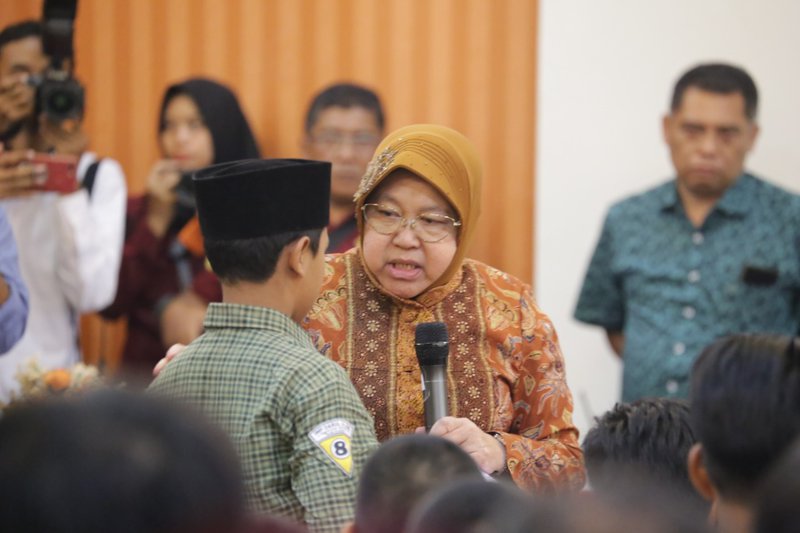 BIMBINGAN. Wali Kota Surabaya Tri Rismaharini memberikan pengarahan pada pelajar yang terlibat tawuran di Gedung Siola Surabaya, Kamis 10 Oktober 2019. Foto: Humas Pemkot Surabaya.