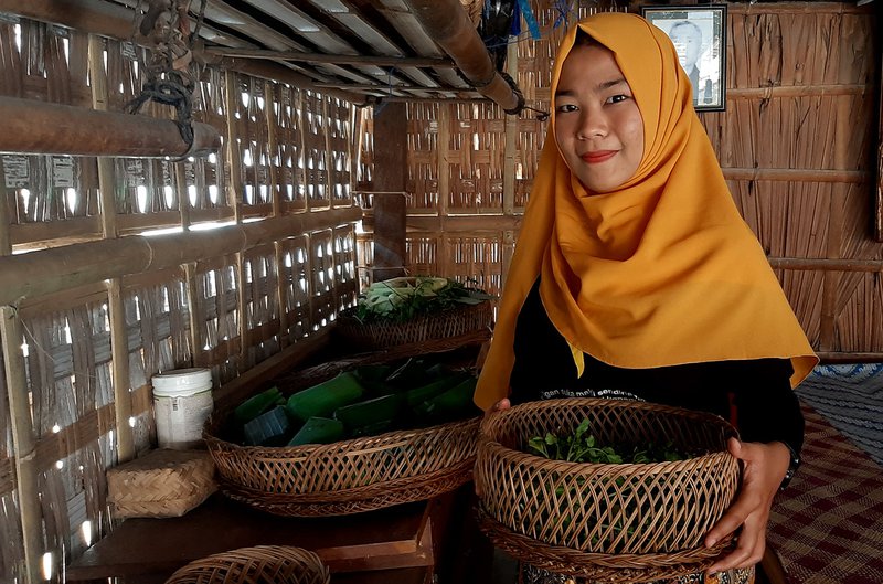 BELAJAR. Ani (19) pemuda adat Desa Kenjo membawa sayuran untuk pelatihan makanan ritual Suku Osing, Sabtu 23 November 2019. Foto: Ahmad Suudi.