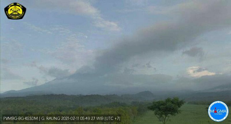 ERUPSI. Visual Gunung Raung yang tengah erupsi dan mengeluarkan abu vulkanik, Kamis 11 Februari 2021. Foto: Pos Pemantauan Gunung Api (PPGA) Raung