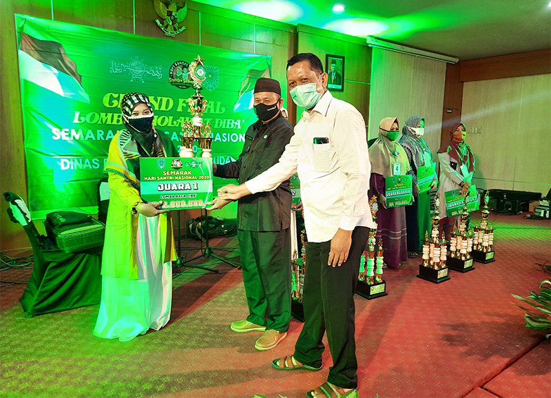 HADIAH: Peserta lomba pembacaan "Sholawat Diba" mendapatkan hadiah yang langsung diberikan Kepala Dinas Pendidikan dan Kebudayaan Kota Probolinggo Moch Maskur di Hari Santri Nusantara. Foto: Zulkiflie