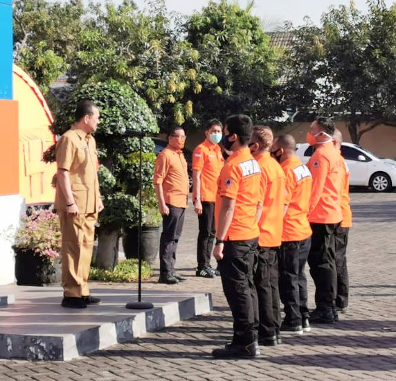 APEL SIAGA. Pelaksana Tugas (Plt) Kepala BPBD Jatim Yanuar Rachmadi memimpin apel kesiapsiagaan bencana, Senin, 7 September 2020. Foto: BPBD Jatim