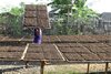 DIPINDAHKAN. Petani di Dawar Blandong memindahkan tembakau rajang untuk dijemur. Harga tembakau asal Mojokerto di musim panen tahun ini terseok-seok. Foto: Karina Norhadini.