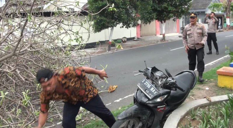 Salah satu warga sekitar, Ninik, mengatakan saat kejadian angin di Kota Mojokerto cukup kencang hingga membuat pohon angsana yang berada depan warung miliknya tumbang dan menimpa pengendara.