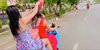 MANDI DI ATAS MOTOR. Icha Kharoline bersama adiknya Ajeng Amalia melakukan I Challenge di Jalan Raya Jayanegera, Kecamatan Puri, Kabupaten Mojokerto. Foto: Repro