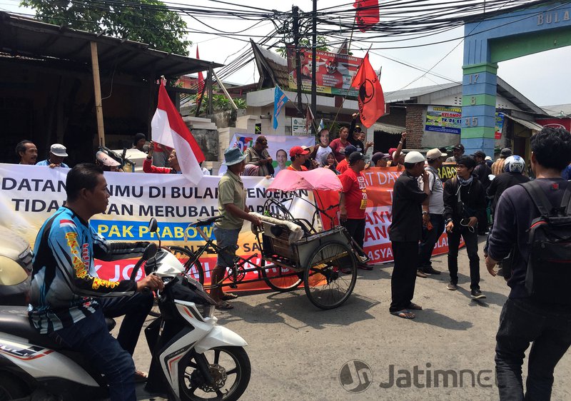 JATIMNET.COM, Surabaya – Rencana kedatangan Calon Presiden (capres) nomor urut 02 Prabowo Subianto di Kelurahan Bulak, Surabaya disambut puluhan simpatisan capres nomor urut 01 Joko Widodo.