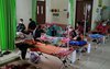 KERACUNAN: Sejumlah pasien yang mengeluhkan pusing, mual, muntaber setelah mengonsumsi hidangan berbuka puasa bersama di Masjid An Nur, Kecamatan Plaosan, Magetan tidak tertampung di ruangan Puskesmas Plaosan, Kamis 29 April 2021.Foto.Nd.Nugroho