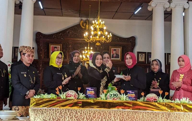 JATIMNET.COM, Mojokerto - Momentum hari jadi Kabupaten Mojokerto ke-703 dirayakan dengan penuh keharmonian dalam balutan pakaian khas ala Majapahit di halaman pendopo Kantor Pemkab, pada Selasa, 9 Mei 2023.