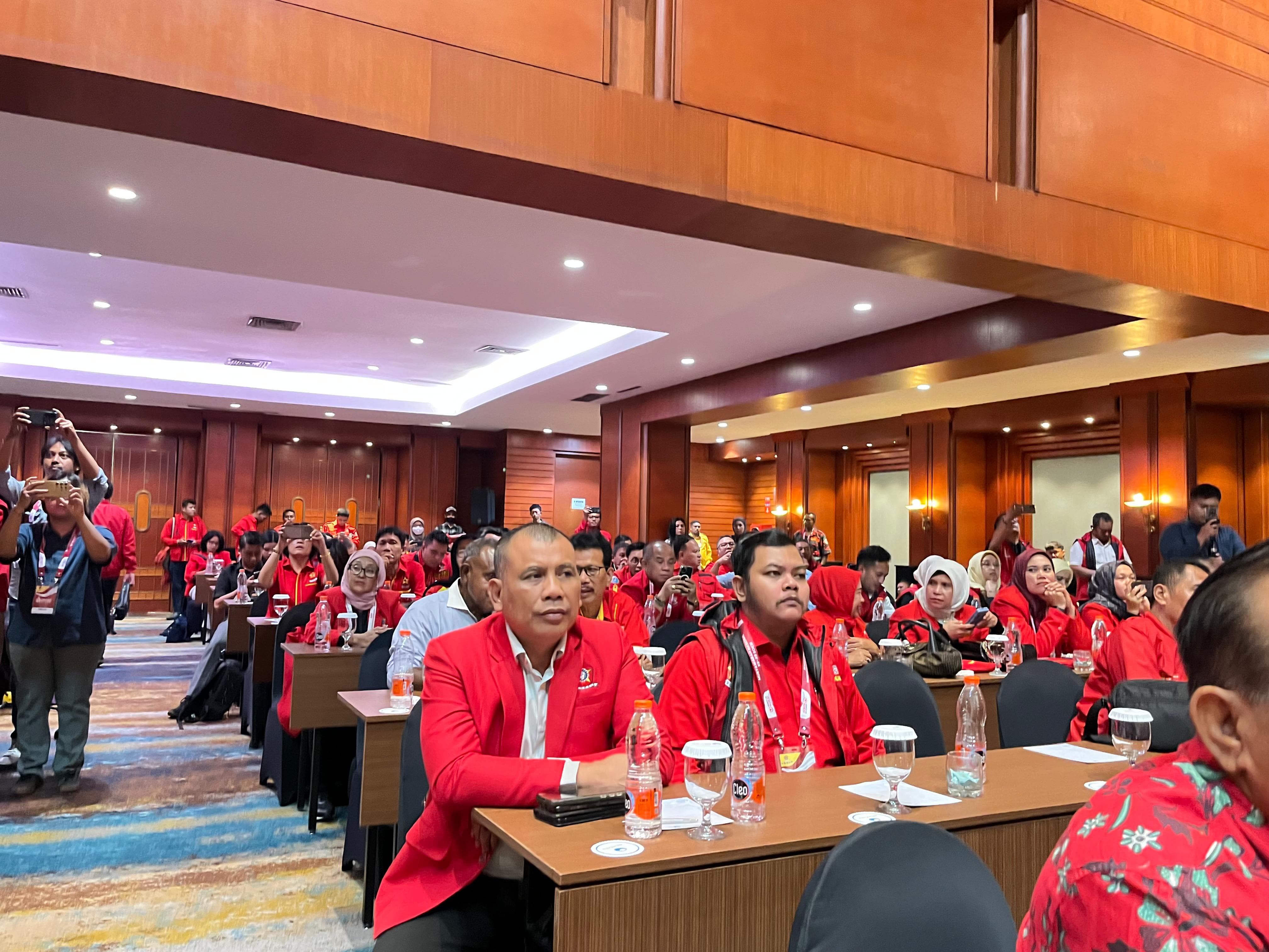 Sekretaris Depidar SOKSI XII Jatim Sumardi (kiri) mengikuti Rapimnas I SOKSI di Jakarta, Senin, 19 Mei 2025. Foto: Depidar SOKSI XII Jatim