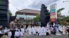 Aksi tersebut digelar sebagai bentuk solidaritas sekaligus menyampaikan tuntutan penangguhan penahanan terhadap dua kiai yang berstatus tersangka dugaan korupsi dana hibah.