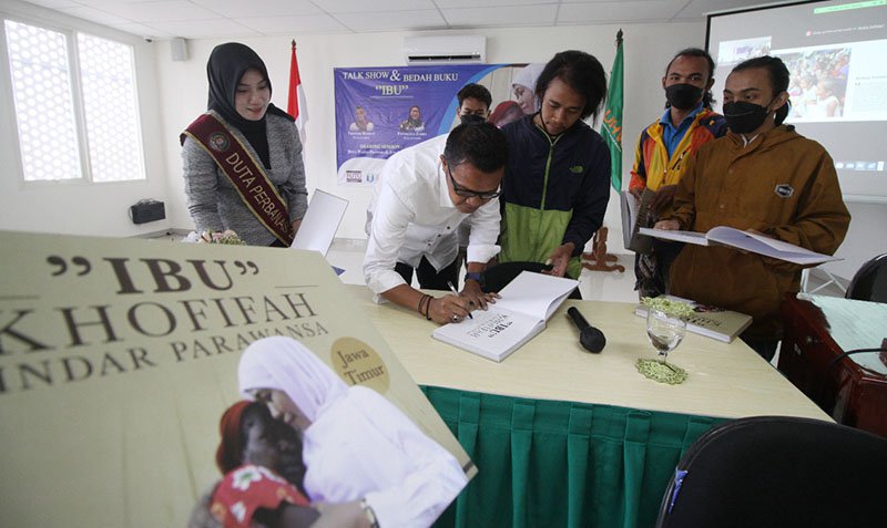 JATIMNET.COM, Surabaya - Tepat di peringatan Hari Ibu Pewarta Foto Indonesia (PFI) Kota Surabaya menggelar bedah buku berjudul 'IBU' Khofifah Indar Parawansa, karya fotografer Trisnadi Marjan dan jurnalis Fatimatuz Zahroh, Rabu 22 Desember 2021