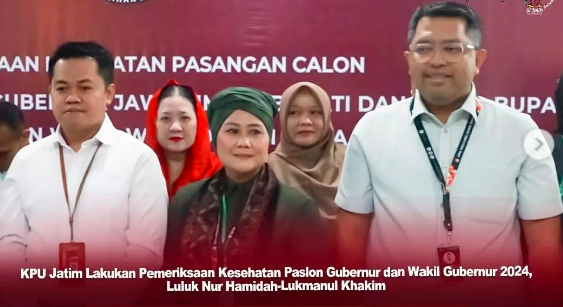 “Berdasarkan kesimpulan dari majelis pemeriksa tim kesehatan yang ditunjuk RSUD dr. Soetomo, ketiga pasangan calon yang dilakukan pemeriksaan kesehatan, dianggap mampu secara jasmani maupun rohani. Ketiga pasangan calon juga dipastikan tidak terindikasi pernah melakukan penyalahgunaan narkotika,” kata Ketua KPU Jatim Aang Kunaifi.