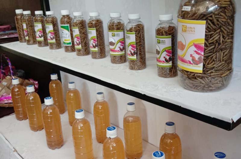 Contoh produk maggot untuk pakan hewan, hasil pengolahan sampah organik di TPA Pakusari. (F