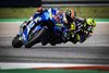 TEGANG. Tekanan yang diberikan Valentino Rossi (belakang) membuat pebalap Suzuki Alex Rins merasakan ketegangan sepanjang balapan di COTAS. Foto: Motogp.com