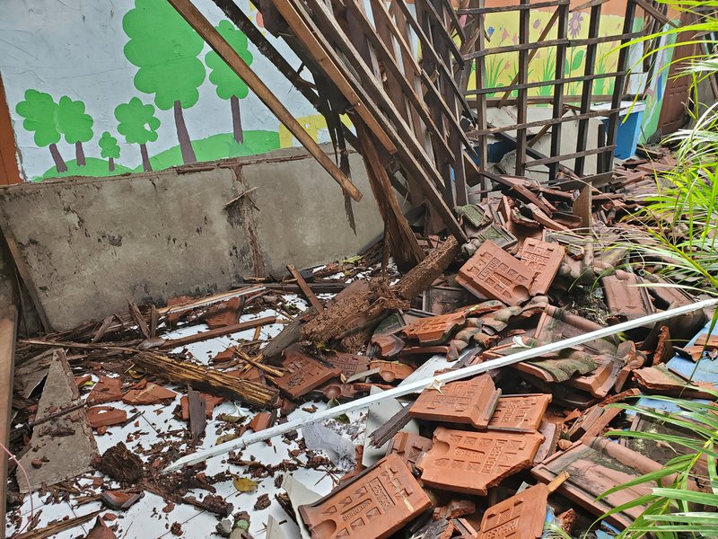 Atap tiga ruang kelas SD Gunungan, Kec. Dawarblandong, Kab. Mojokerto, ambruk pada Senin, 30 Desember 2024 dan belum diperbaiki sampai Kamis, 2 Januari 2025. Foto: Hasan