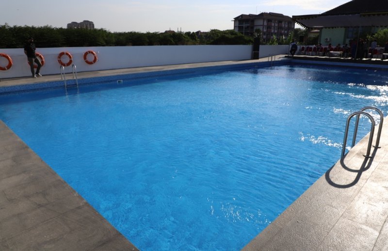 Namun, karena saat ini masih dalam kondisi pandemi Covid-19, sehingga kolam renang itu belum dapat digunakan.
