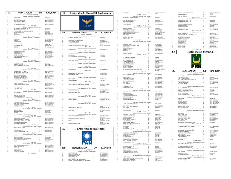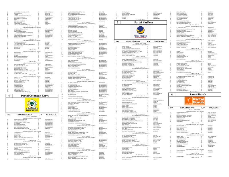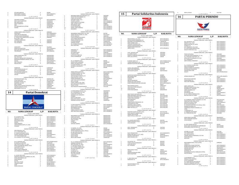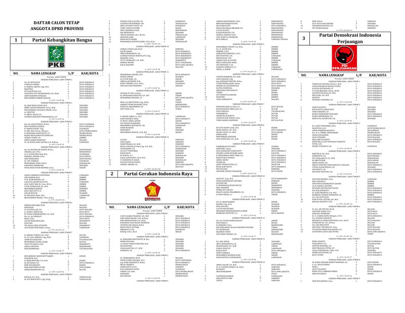 Berikut ini daftar caleg atau DCT Anggota DPRD Jawa Timur dalam Pemilu 2024 yang bersumber dari laman https://jatim.kpu.go.id/ atau bisa diunduh di sini DCT Anggota DPRD Jawa Timur Pemilu 2024