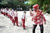 SISWA BARU. Guru mengajak siswa baru kelas 1 SD di Surabaya yang baru diterima. Dok: Humas Pemkot Surabaya