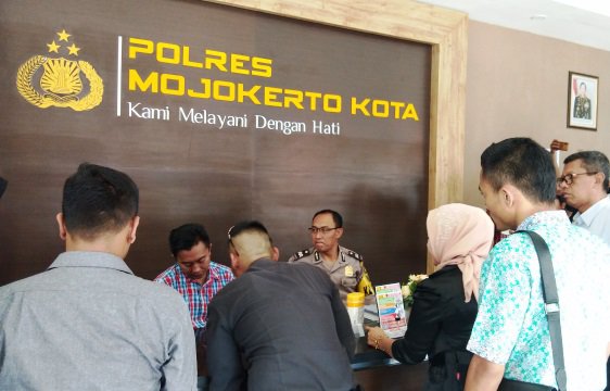 INVESTASI BODONG. Seratusan korban investasi bodong PT RHS Group melaporkan penipuan yang dialaminya ke Mapolresta Mojokerto, Selasa 3 September 2019. Foto: Karina Norhadin