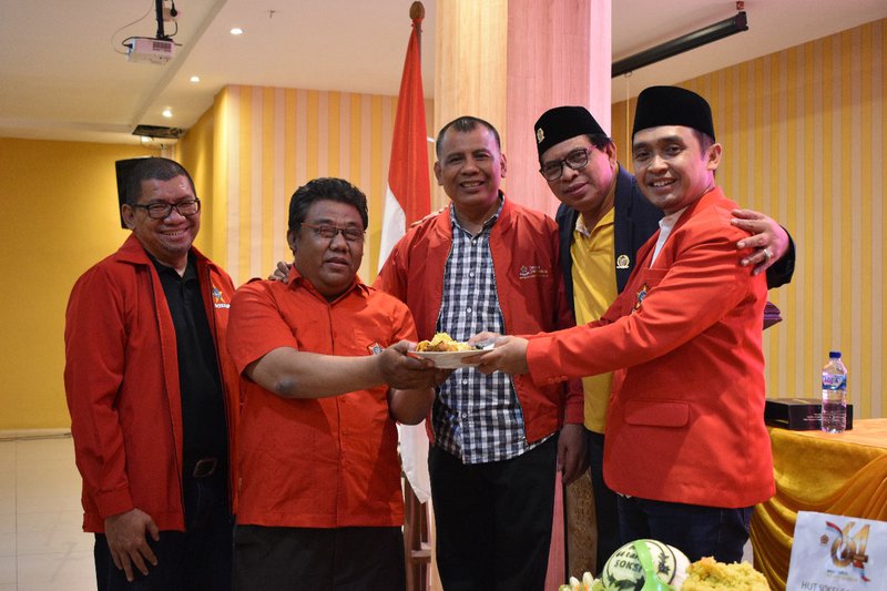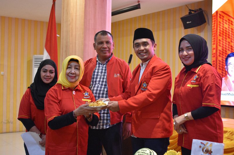 Potong tumpeng dalam syukuran HUT ke-64 SOKSI di DPD Golkar Jatim, Senin malam, 20 Mei 2024. Dok: SOKSI Jatim