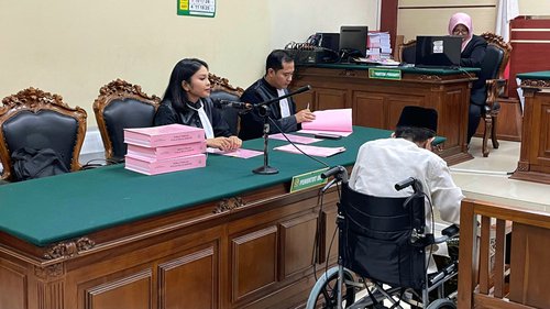 Salah satu terdakwa harus menghadiri sidang dengan menggunakan kursi roda. Foto: Agus Salim