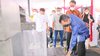 JASA KONSTRUKSI. Direktur Utama SIG Donny Arsal (batik biru) memperhatikan demo produk ThruCrete. Foto: SIG
