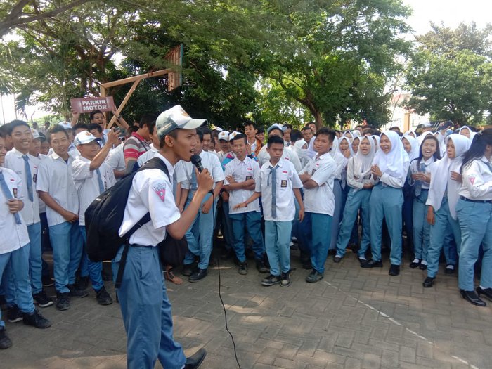 ORASI. Sedikitnya seratus siswa SMKN 1 Trowulan menolak ikut PAS, Senin 2 Desember 2019. Foto: Karina Norhadini.