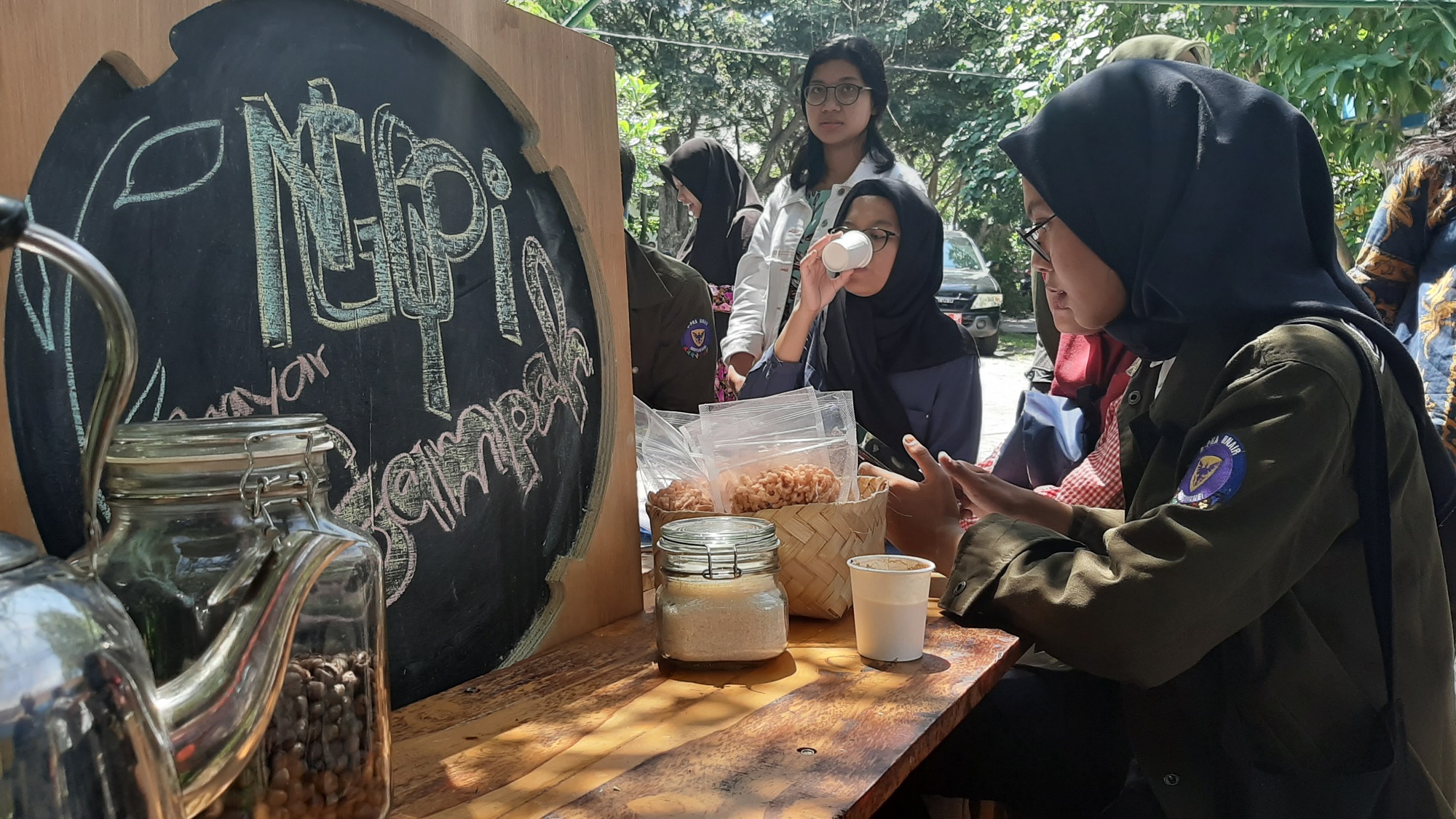 NGOPI. Mahasiswa Program Studi di Luar Kampus Utama (PSDKU) Unair di Banyuwangi mencoba kopi di Mobile Cafe. Foto: Ahmad Suudi