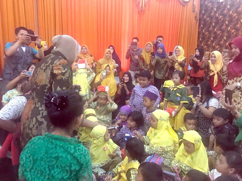 Sontak, gelak tawa anak - anak pecah saat Wali Kota Surabaya tersebut bergaya seperti bebek di depan ratusan anak taman kanak - kanak dan sekolah dasar tersebut.