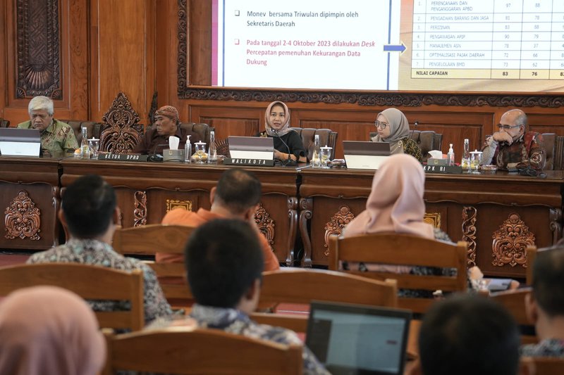 Pemkot Mojokerto menggelar rapat Monitoring dan Evaluasi Tematik Monitoring Center for Prevention (MCP) bersama KPK dan jajaran Pemkot dan DPRD Kota Mojokerto di Balai Kota Mojokerto, Jumat, 13 Oktober 2023. Foto: Dinas Kominfo Kota Mojokerto