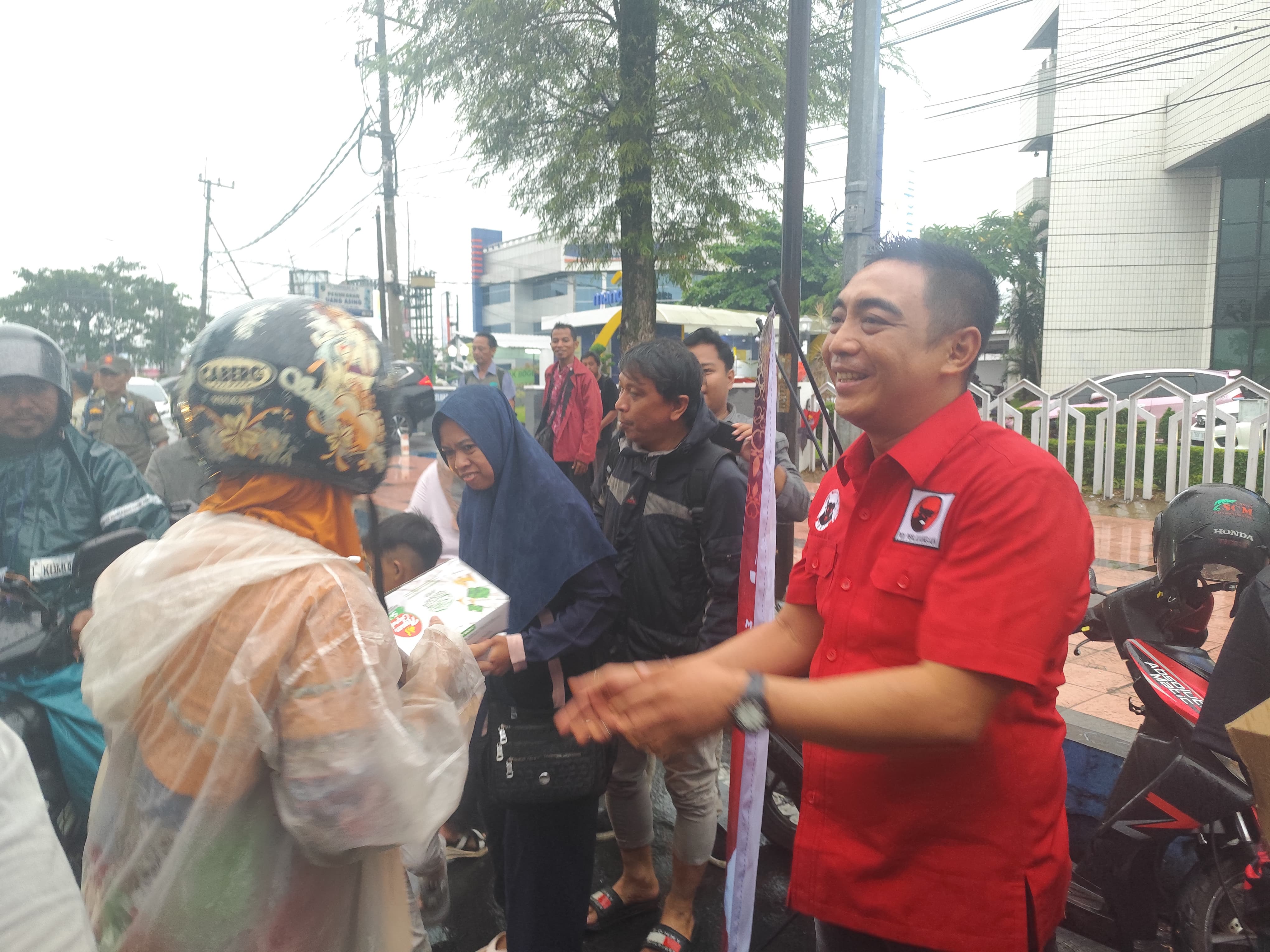 Ketua DPD BMI Jatim Eko Yunianto bersama sejumlah kader membagikan takjil, Kamis, 27 Maret 2025. Foto: DPC PDIP Jember