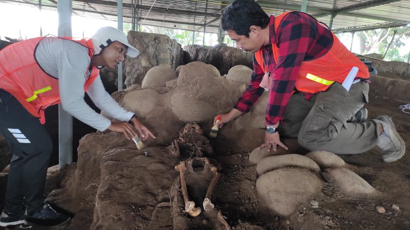 "Kalau makam Islam rata-rata kedalamanan kerangka 1,5 meter dari permukaan tanah. Kondisi kerangka juga telentang, tangan di dada. Nah, yang ini posisinya tengkurap, lalu tertutup bebatuan, ini menjadi pertanyaan sekali," katanya.