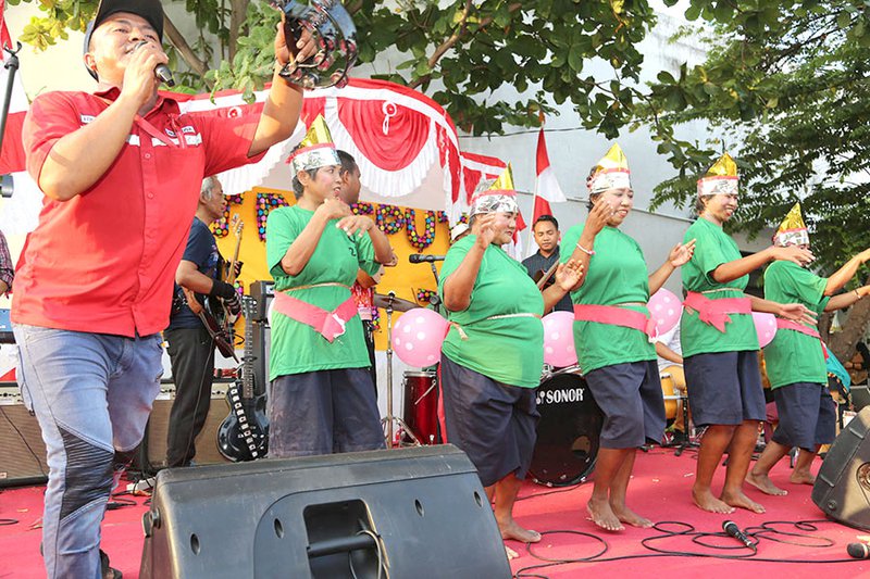 PENTAS MUSIK: dr Lila Nurmayanti SpKJ ikut menyumbangkan lagu di pentas musik untuk terapi kesehatan ODGJ di UPTD Liponsos Keputih Surabaya. Foto: Istimewa.