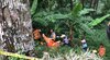 Petugas Polres Mojokerto sedang melakukan pencarian potongan tubuh korban mutilasi yang tercecer di jurang wilayah Kecamatan Pacet. Foto: Hasan.