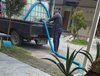 AIR BERSIH: Penjual air tangki tengah mengisi air berseh di salah satu rumah warga Permata Optima PPS II, kecamatan Manyar, Gresik karena air PDAM mampat. (Foto/Agus Salim).