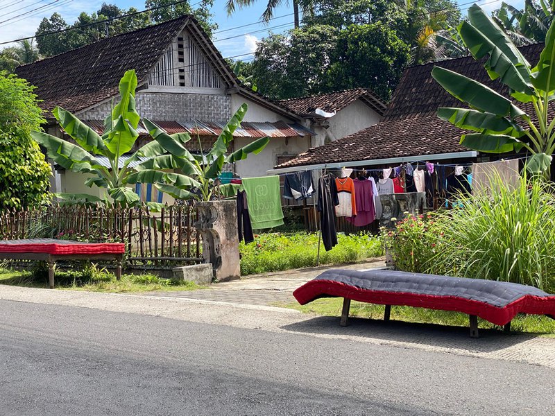 Sejak pagi hari, Kamis, 29 Mei 2025, ribuan kasur berwarna merah dan hitam dijemur secara serempak di depan rumah-rumah warga. Warna kasur yang seragam menjadi pemandangan khas yang hanya bisa ditemui saat ritual ini berlangsung.