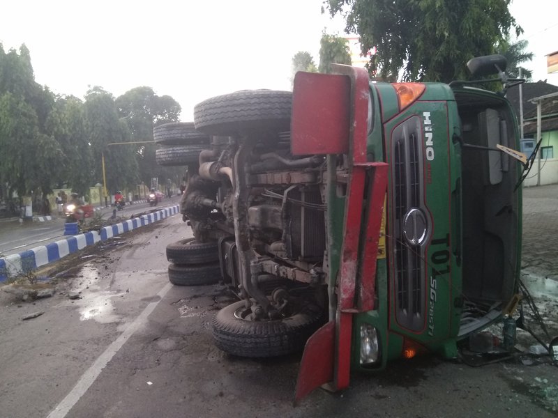 Lakalantas pertama adalah tergulingnya truk pengangkut gas untuk industri atau Gas Transportation Modul (GTM). Kendaraan yang dikemudikan Hari Nurdi (35) warga Sragen, Jawa Tengah ini melaju dari arah Surabaya menuju Madiun. Beberapa meter sebelum lokasi kejadian, tiba-tiba truk berpelat nomor L 9070 UB ini berjalan terlalu ke tengah.