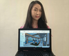 Nathania Melissa menunjukkan hasil karyanya meredesain interior dan desain styling Museum TNI Angkatan Laut.
