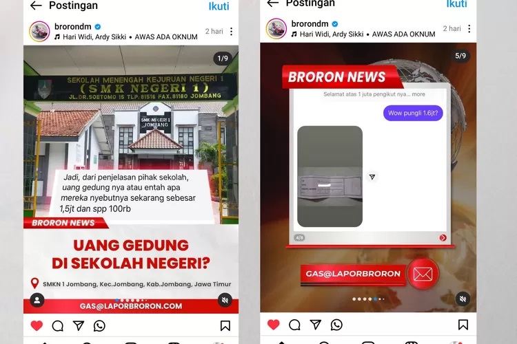 Sebelumnya, sebuah akun Instagram @brorondm memposting dugaan pungutan liar di SMKN 1 Jombang sejak beberapa hari terakhir.