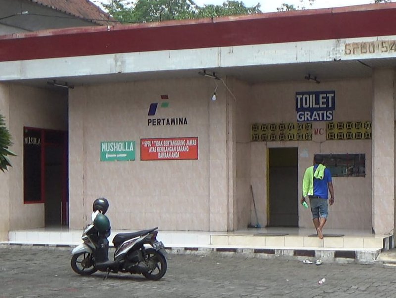 TOILET GRATIS. Suasana toilet SPBU di Desa Malasan Kulon, Kec. Leces, Kab. Probolinggo, yang akhirnya digratiskan setelah didatangi Menteri BUMN Erick Thohir, Selasa, 23 November 2021. Foto: Zulkiflie