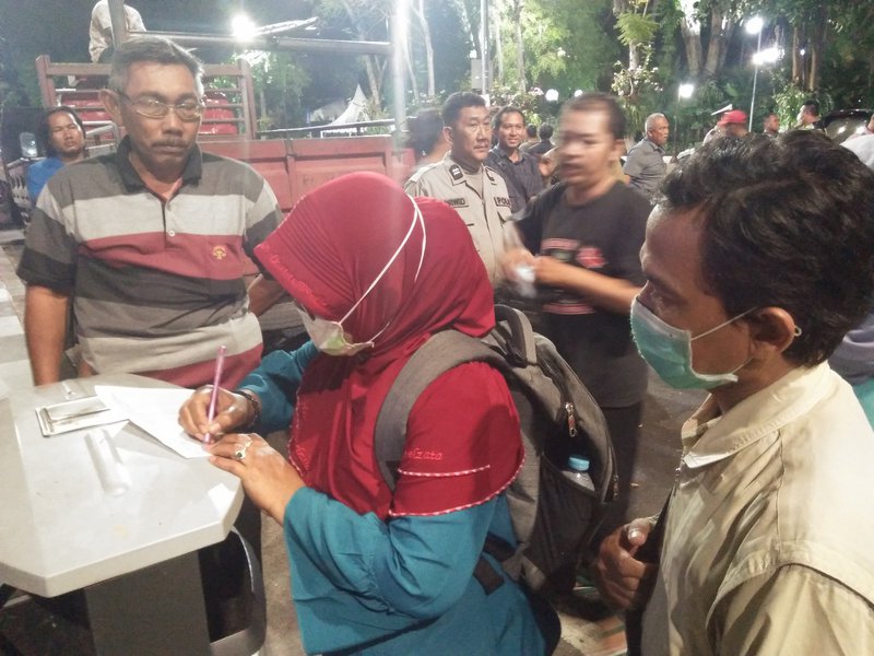 ISI DATA. Sejumlah wali murid mengisi data setelah menggelar orasi di depan kediaman Wali Kota Surabaya Tri Rismaharini, Kamis 20 Juni 2019. Foto: Khoirotul Lathifiyah.