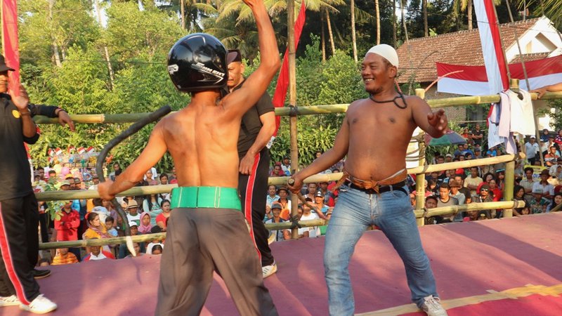 Tak hanya itu, dalam tarung cambuk itu ada aturan yang tidak boleh dilanggar. Setiap menyabetkan cambuk, tidak boleh menyasar alat vital atau wajah. “Itulah mengapa setiap peserta tiban menggunakan helm demi keselamatan.” lanjut Mustofa.