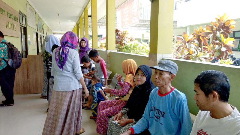 BEROBAT: Warga Dusun Sumberwuluh, Desa Lakardowo, Kecamatan Jetis, Mojokerto yang berobat ke Puskesmas Jetis. Foto: Karina.